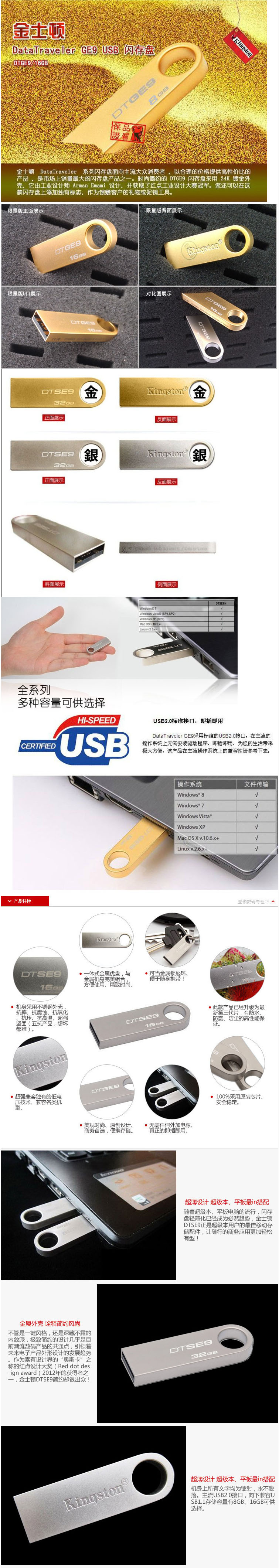 金士顿DTSE9金属U盘USB2.0(金属银外壳)