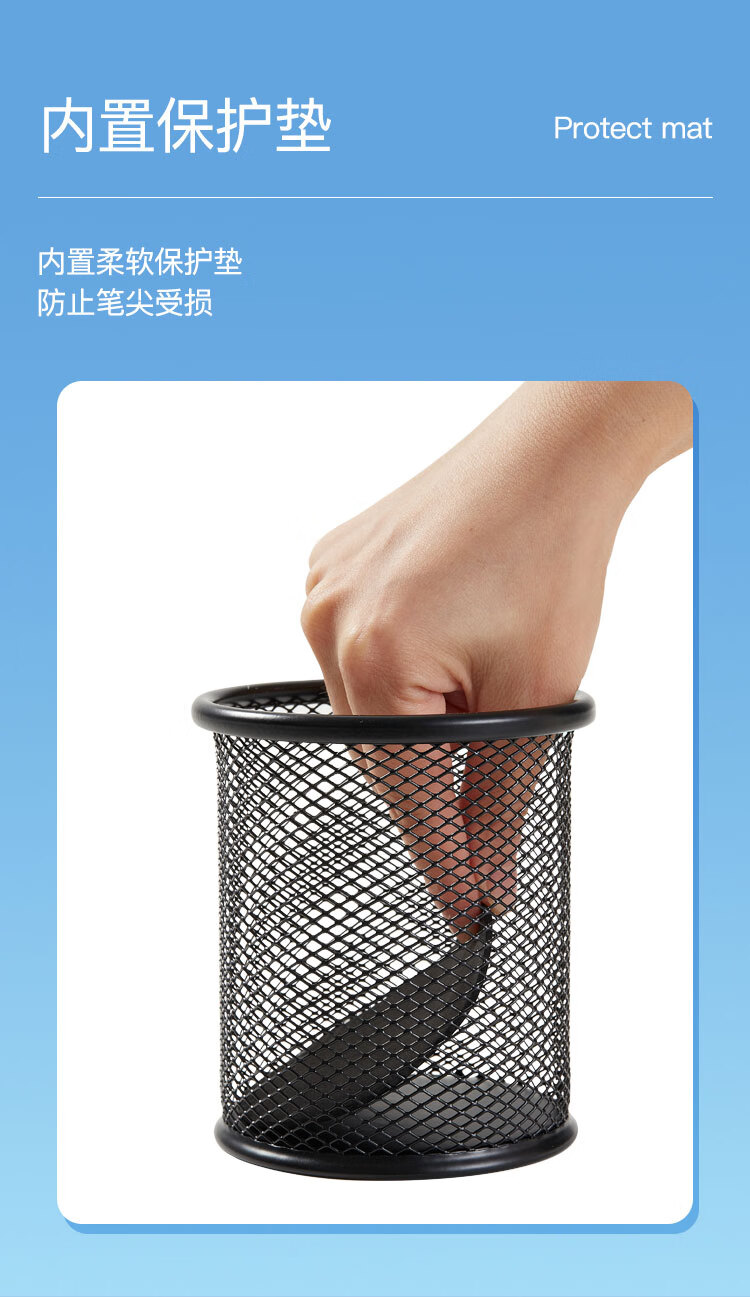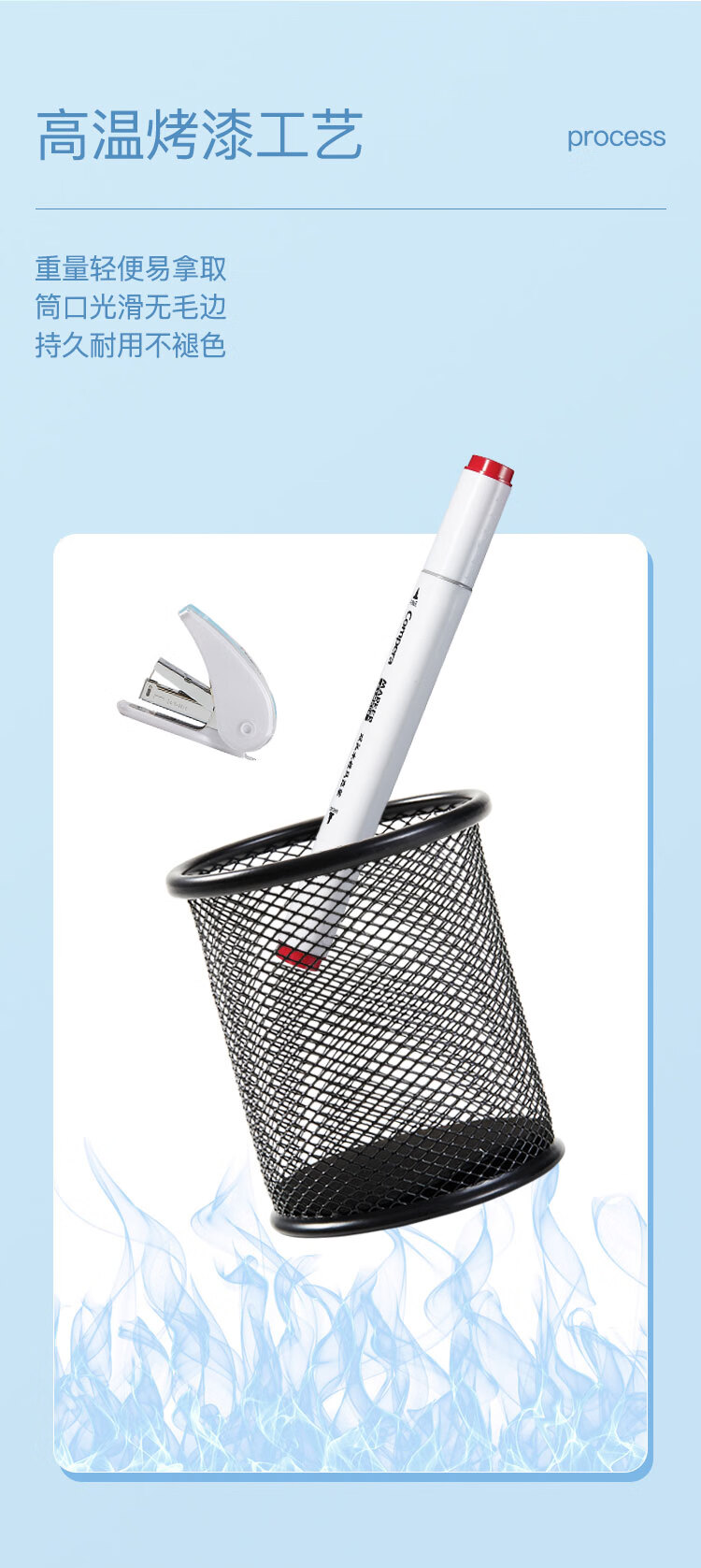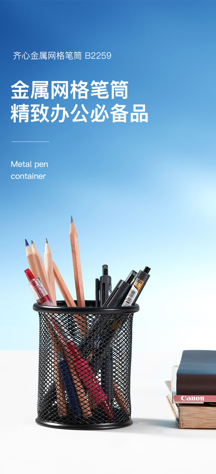 齐心B2259耐用铁网圆笔筒 黑色 单个装