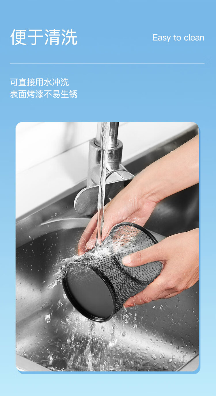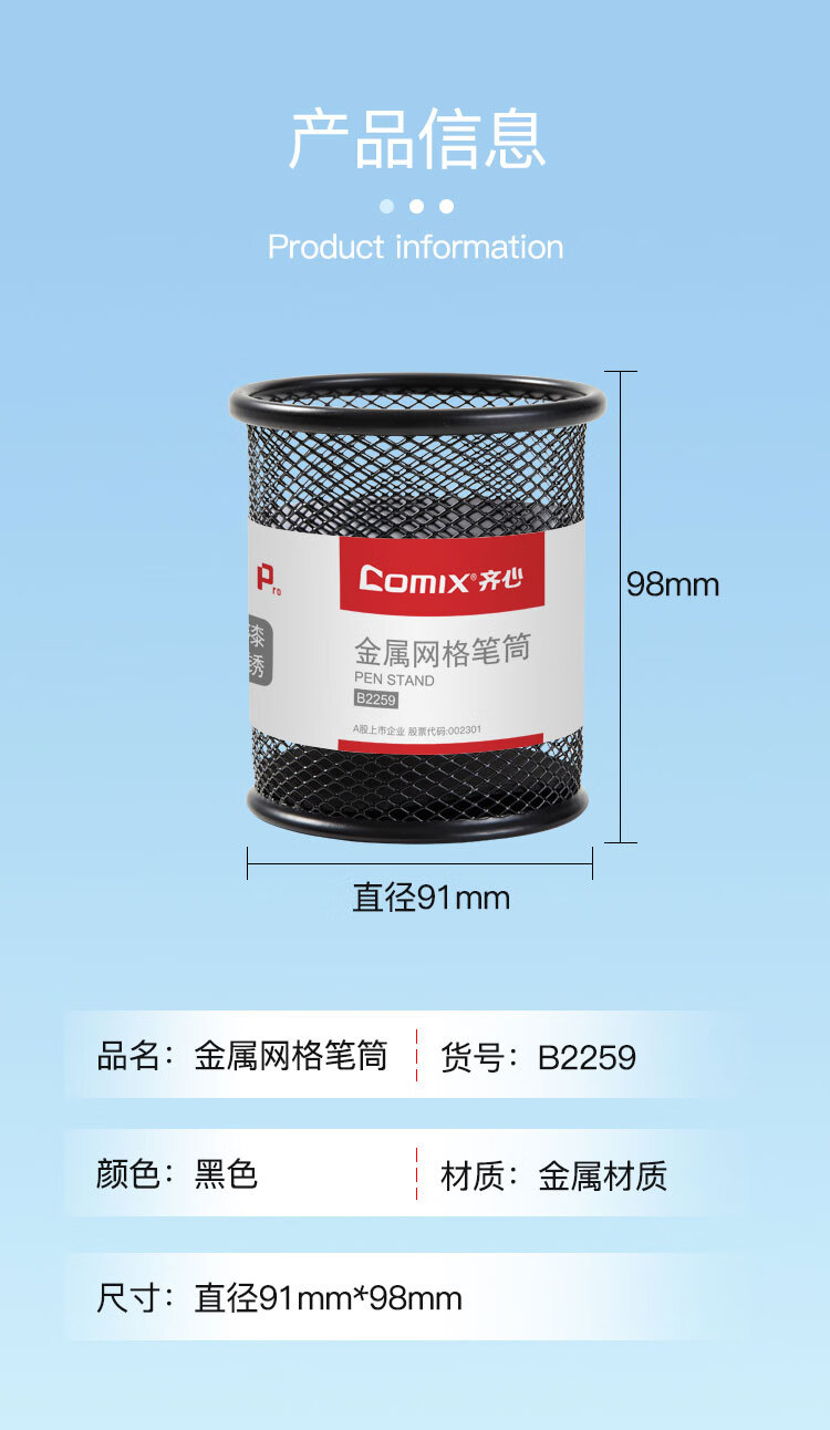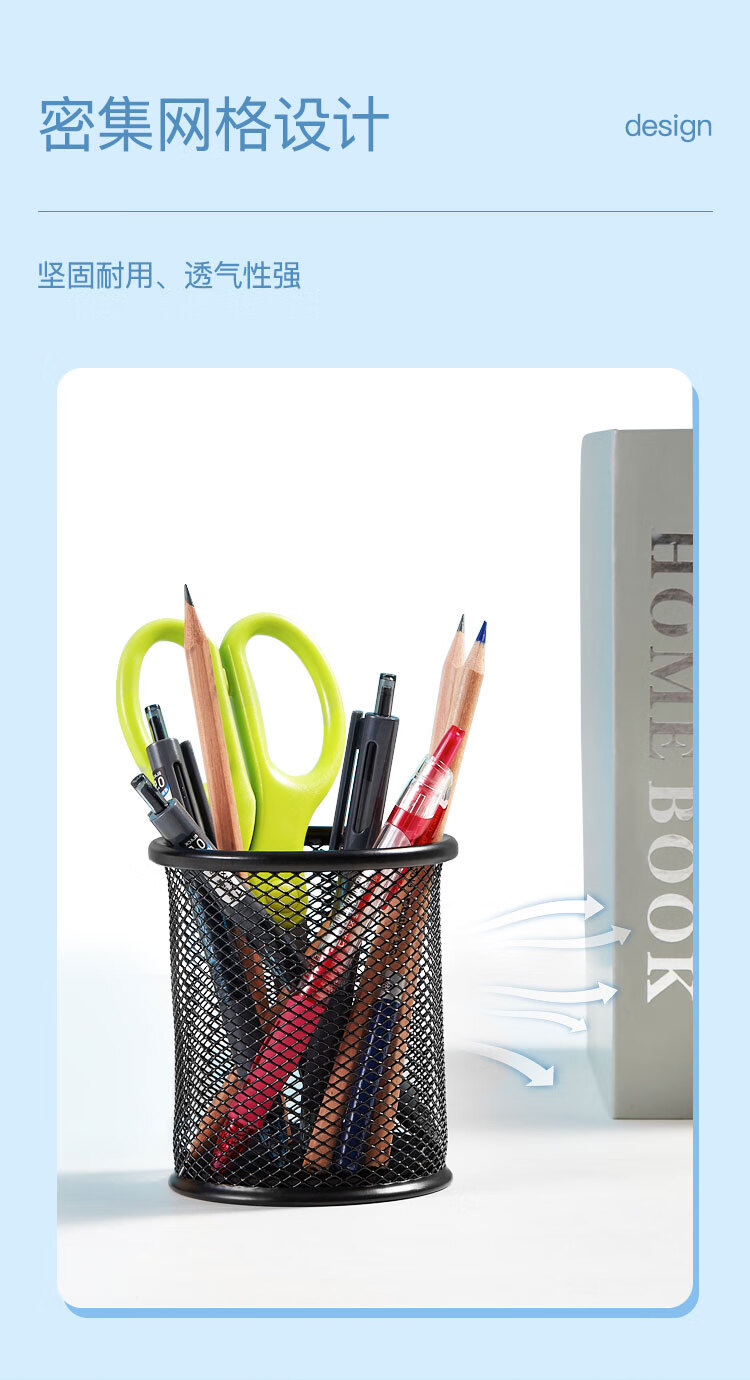 齐心B2259耐用铁网圆笔筒 黑色 单个装
