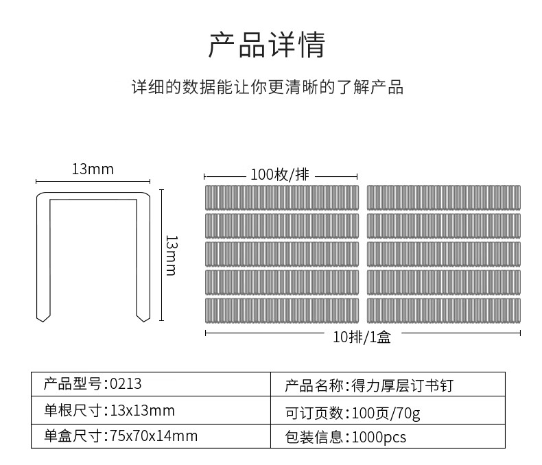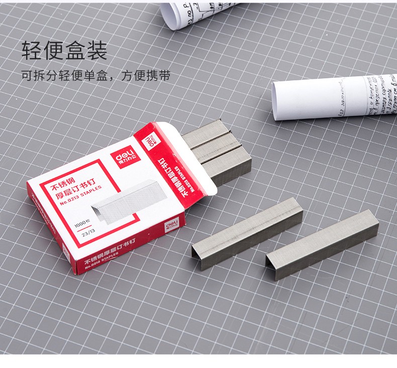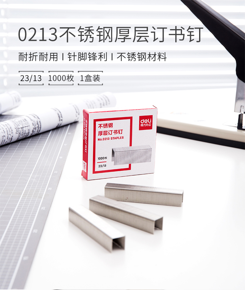 得力0213不锈钢厚层订书钉 23/13 1000枚/盒 单...