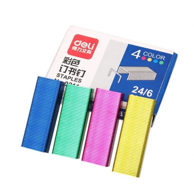 得力0211彩色订书钉 12# 800枚/盒 单位:盒