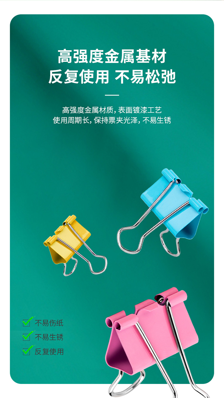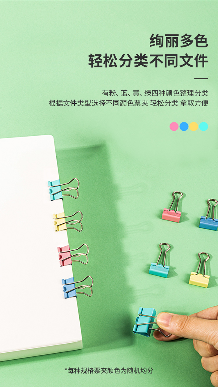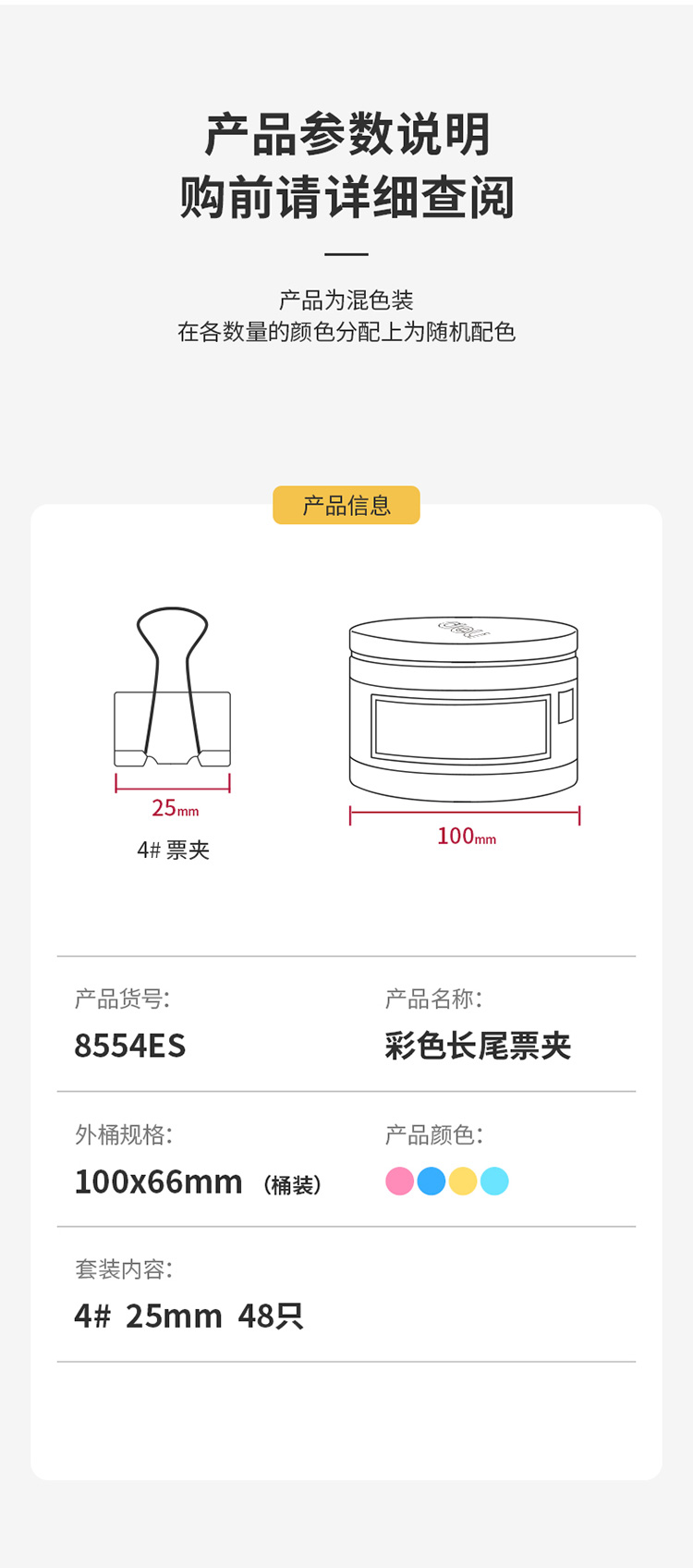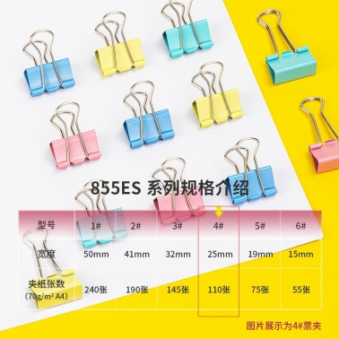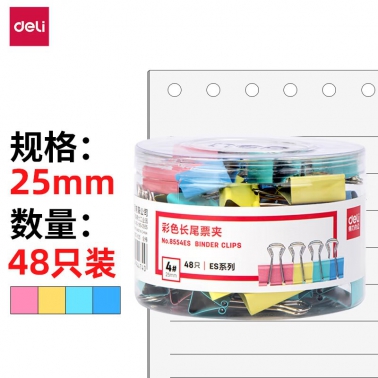 得力8554ES长尾夹 4#25mm 彩色 48只/筒
