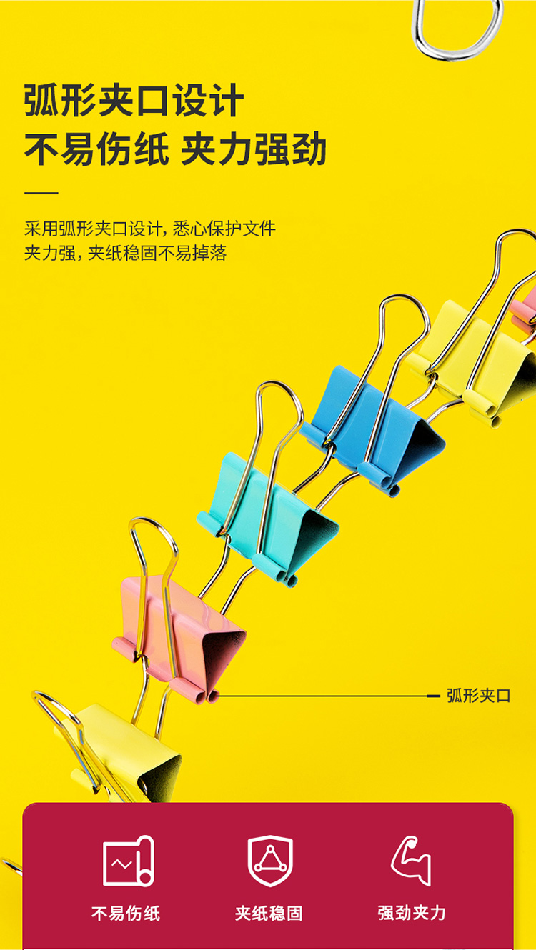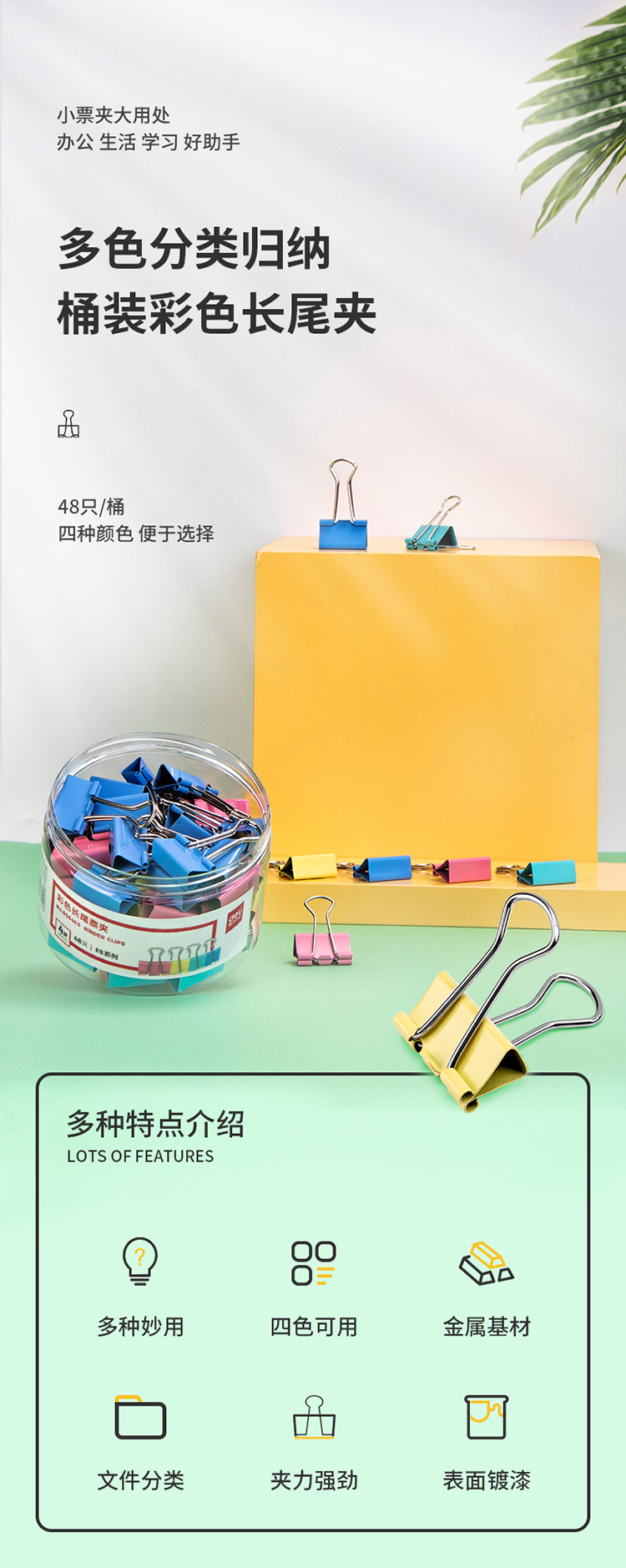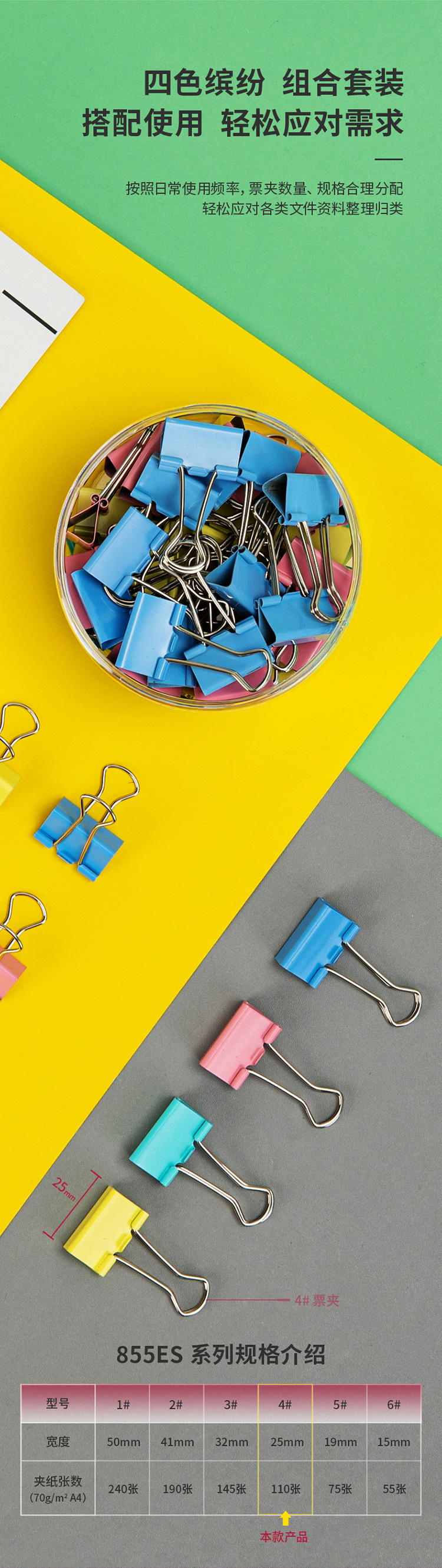 得力8554ES长尾夹 4#25mm 彩色 48只/筒