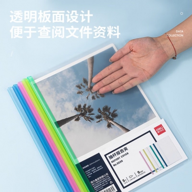 得力5539抽杆文件夹 A4/9mm 单色随机 5个装