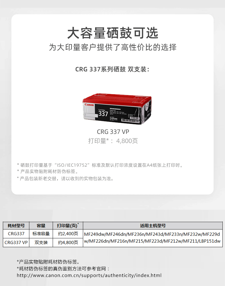 佳能MF232w/MF233n/MF236n/MF243d/MF246dn/MF249dw/LBP151dw/MF229dw/MF226dn/MF216n/MF215/MF223d/MF212w/MF211