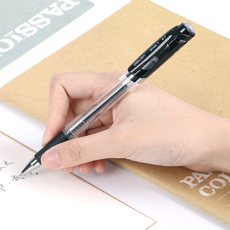 得力S20中性笔 拔盖式 0.7mm 黑色 12支/盒
