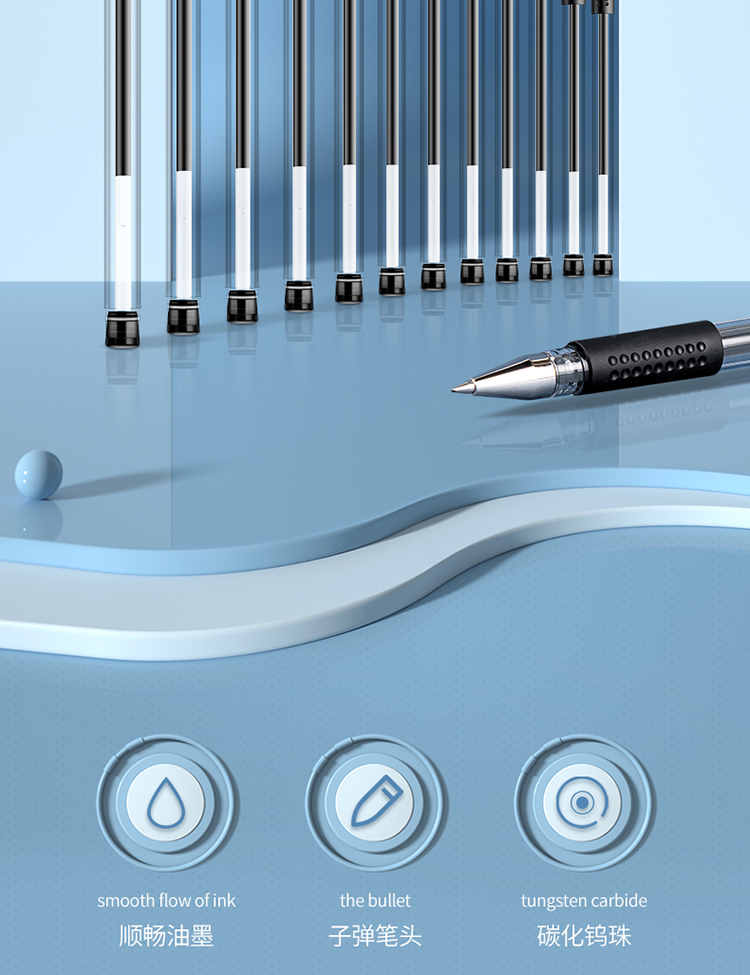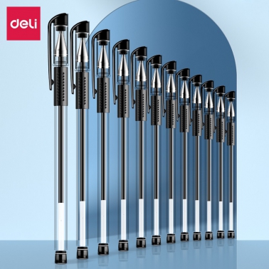 得力6600ES中性笔 拔盖式子弹头 0.5mm 黑色 12...