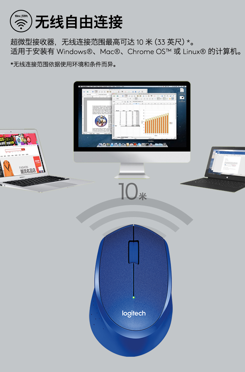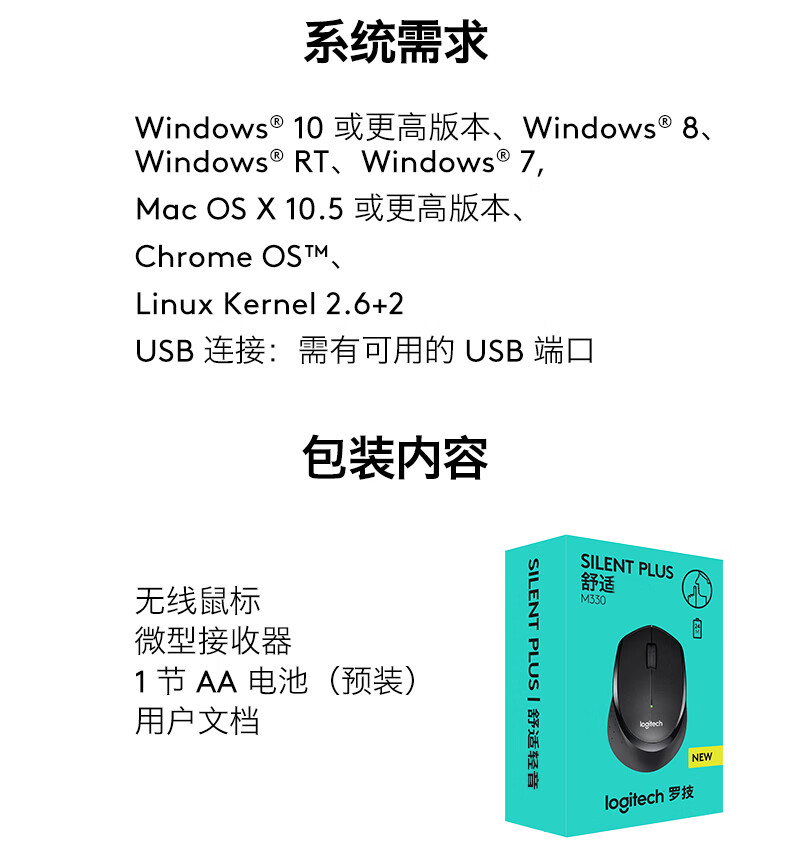 罗技无线鼠标M330 静音 黑色(单位:个)