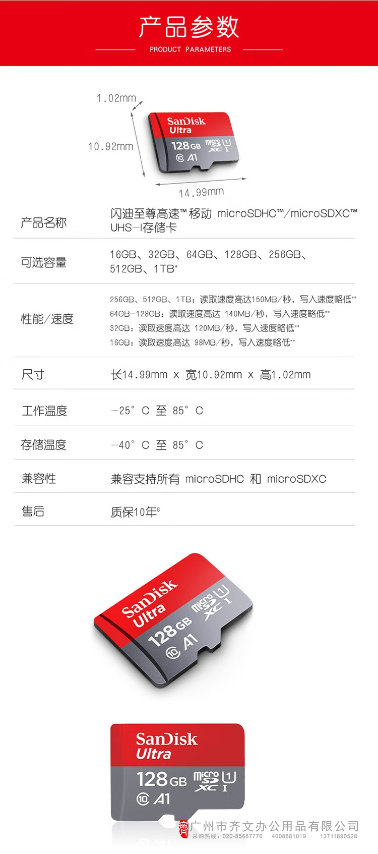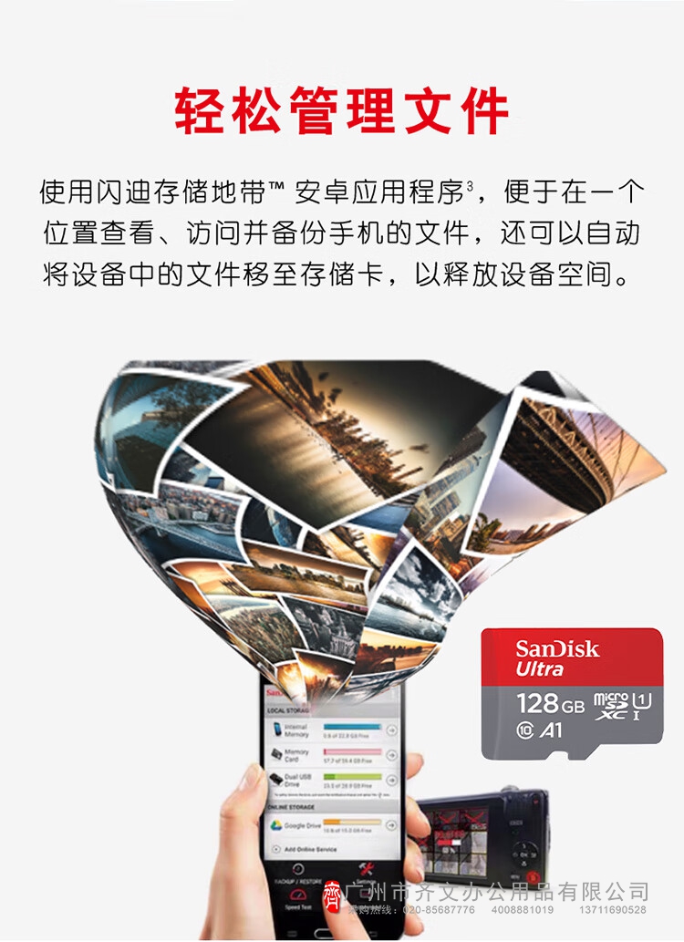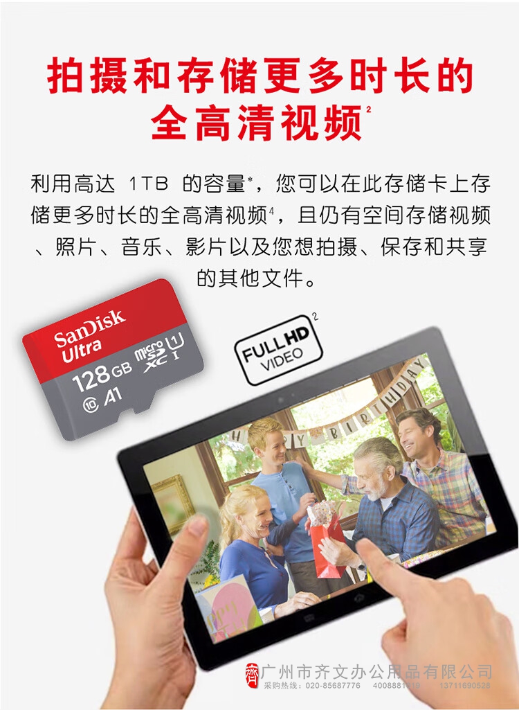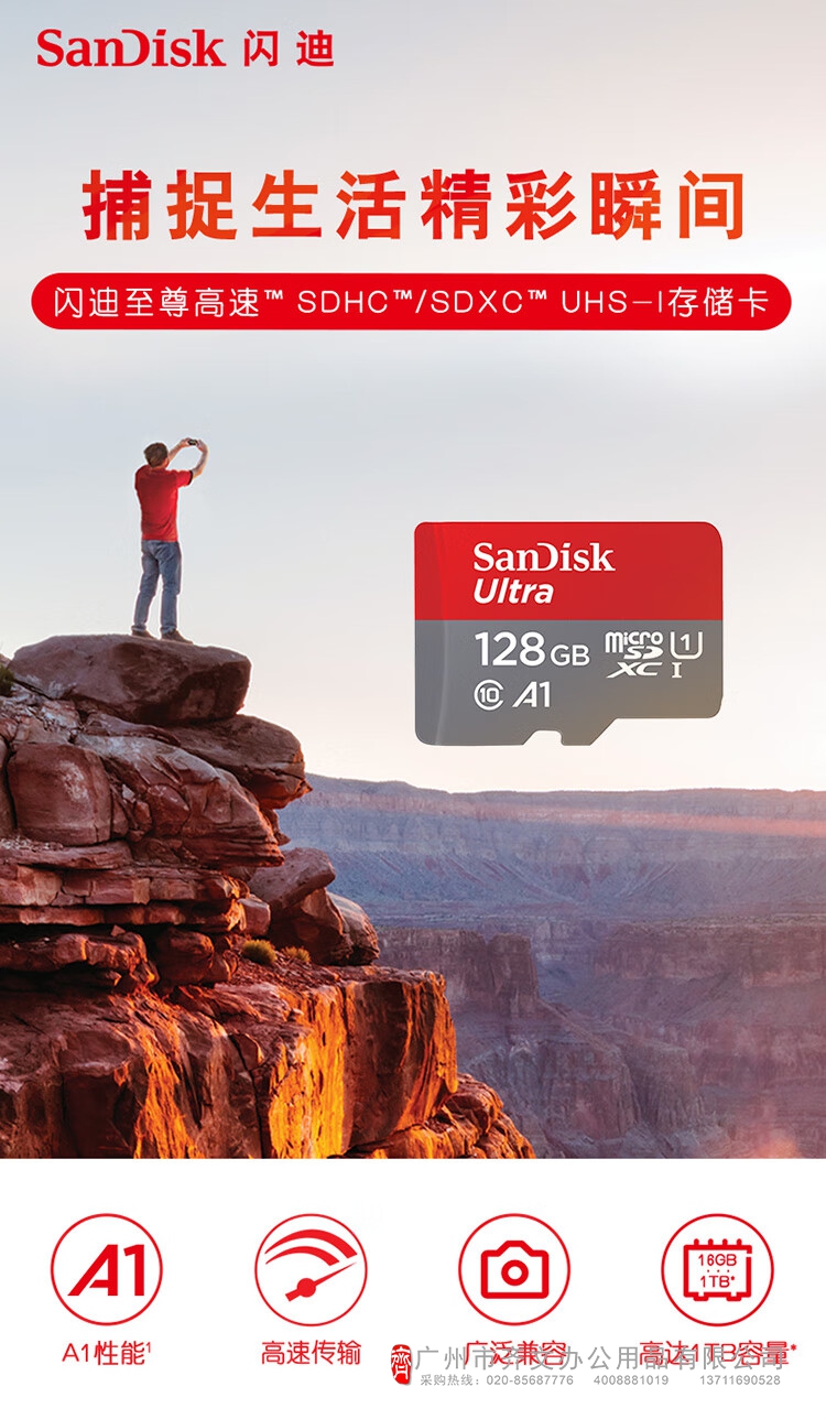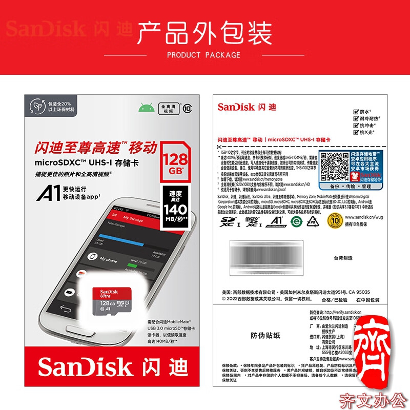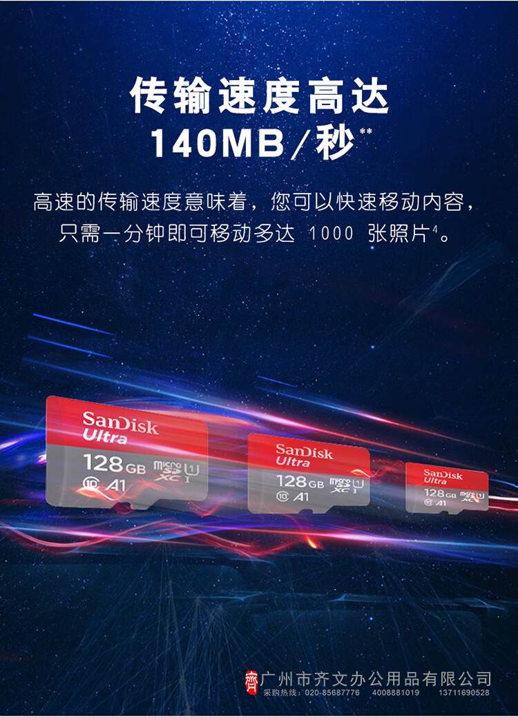 闪迪存储卡 TF卡 128GB容量 读速140MB/s(单...