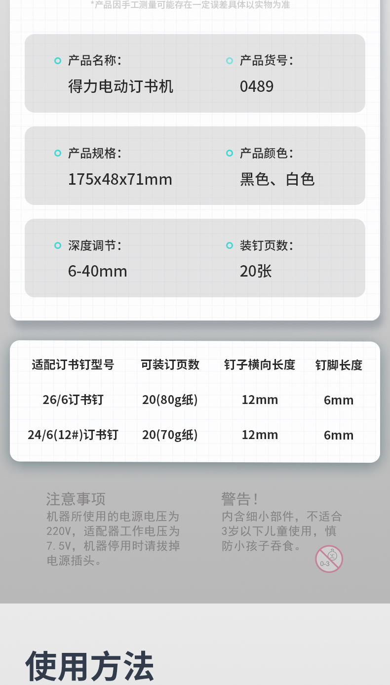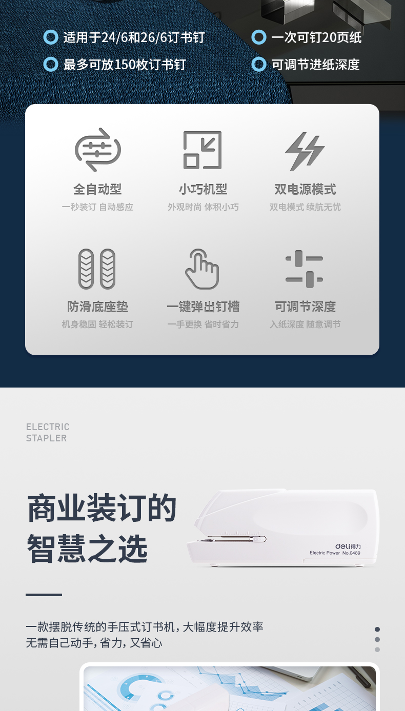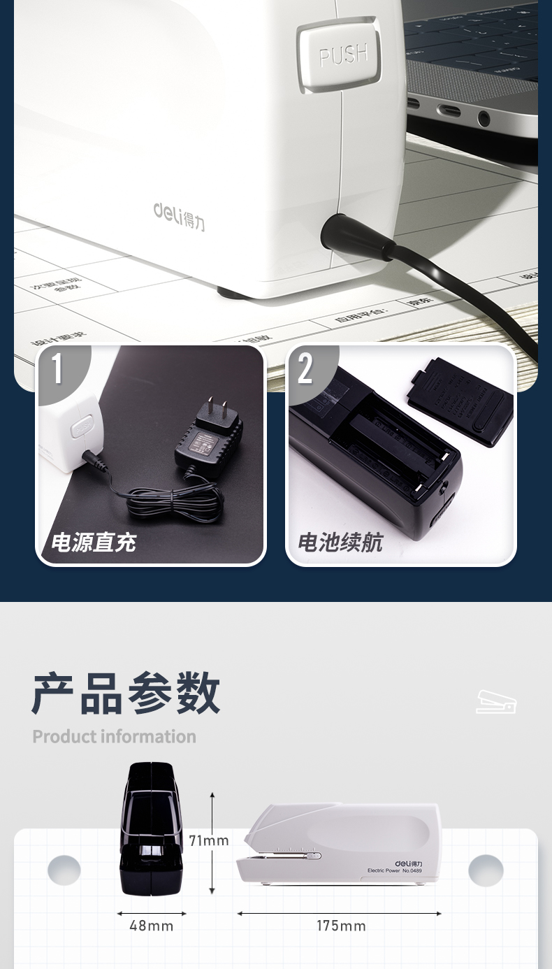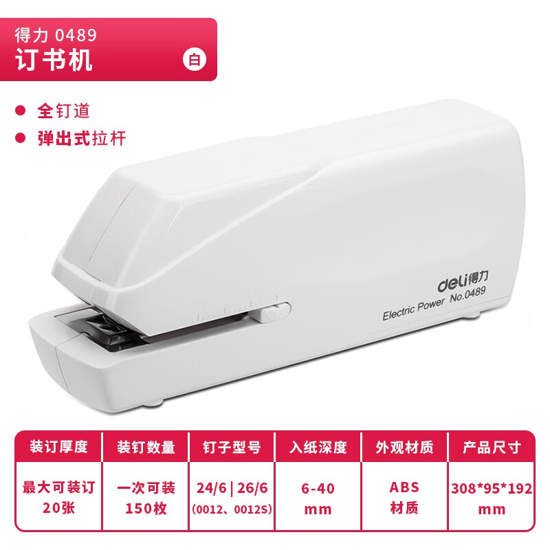 得力0489电动订书机 白色 单位:台