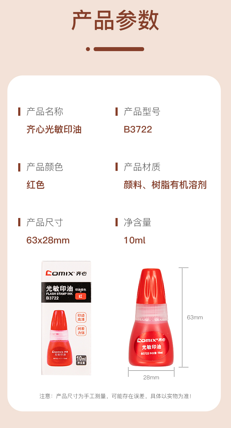 齐心B3722光敏印油 红色 10ml/瓶 单瓶装