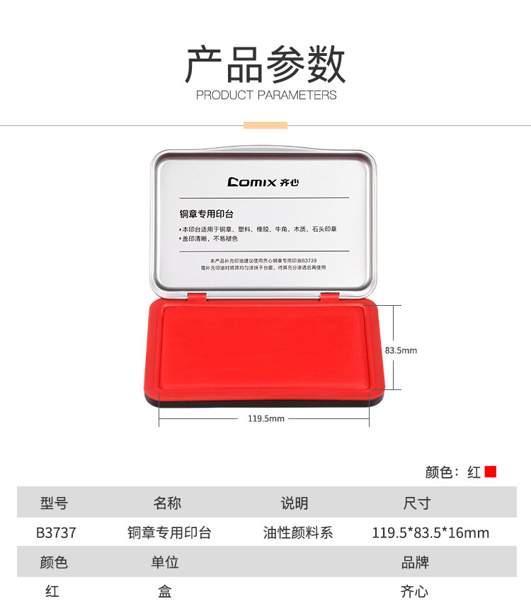 齐心B3737铜章专用印台 红色 单位:个
