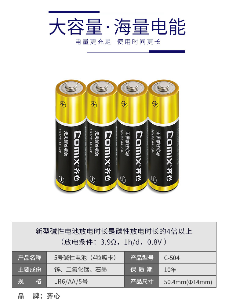 齐心 C-504 5号碱性电池 4粒装