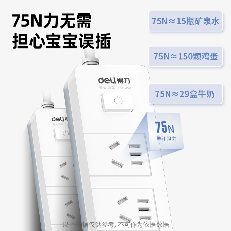 得力18254插座 5组合孔总控3米(个)
