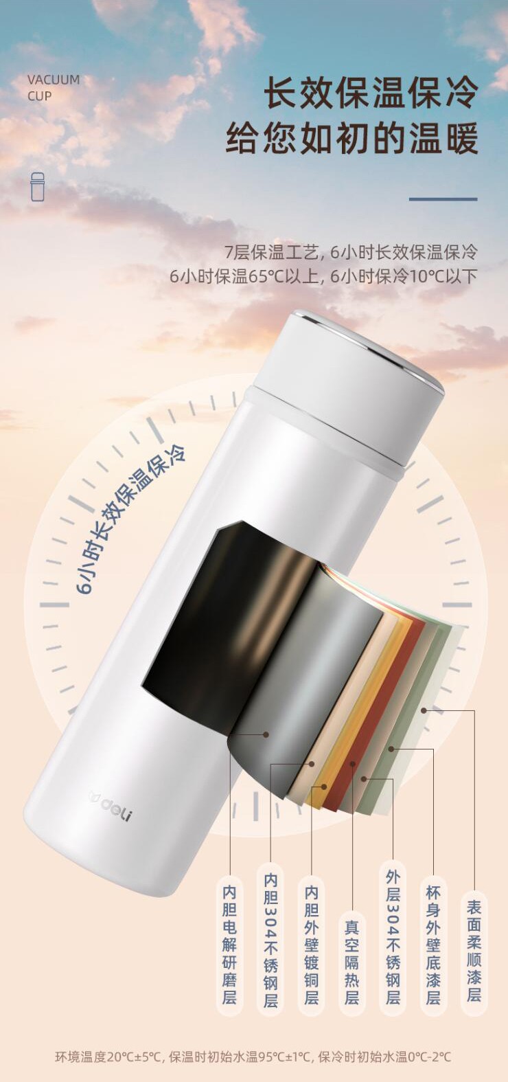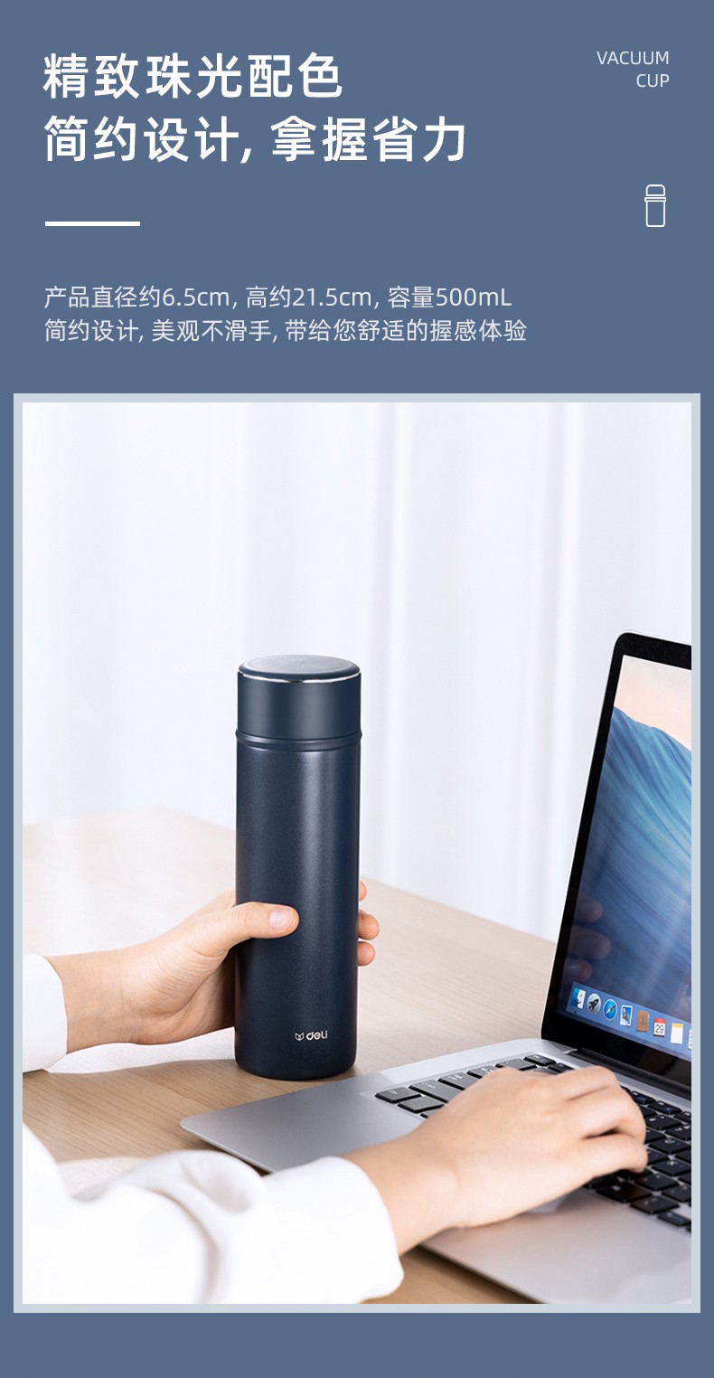 得力保温杯 304不锈钢 容量500ml LL601-BGY...