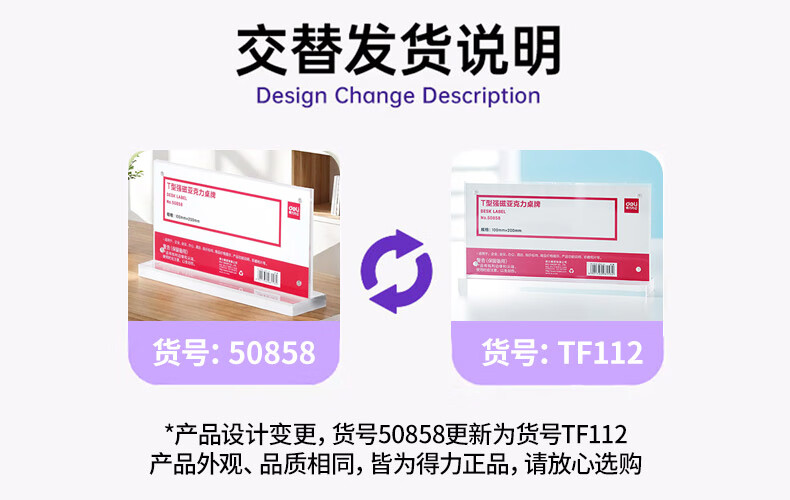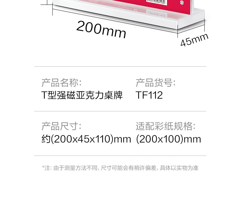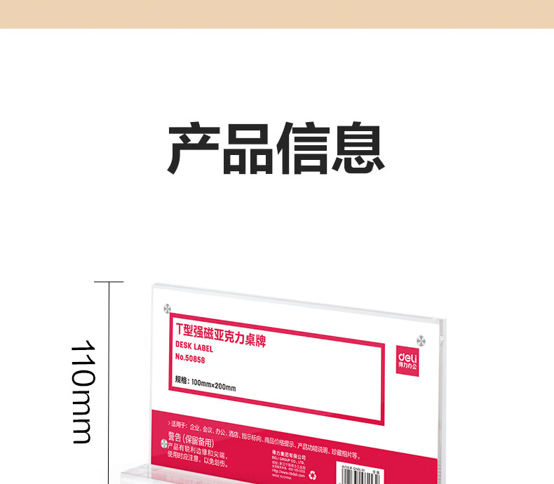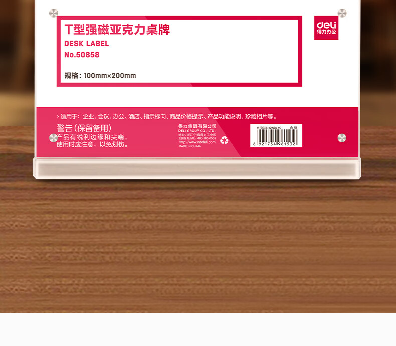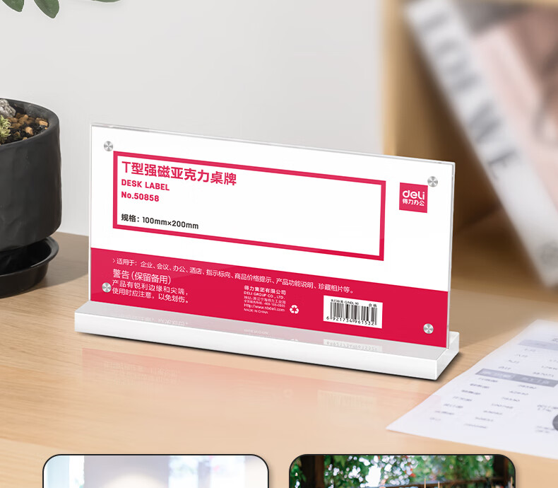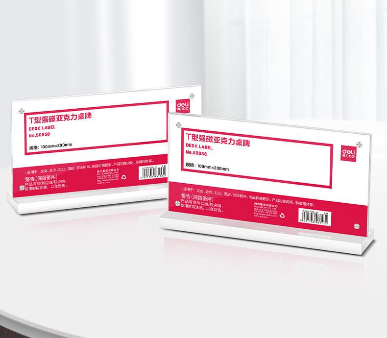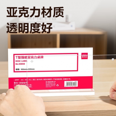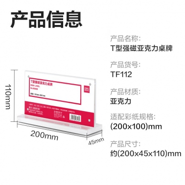 得力TF112强磁亚克力T型桌牌台卡(个)
