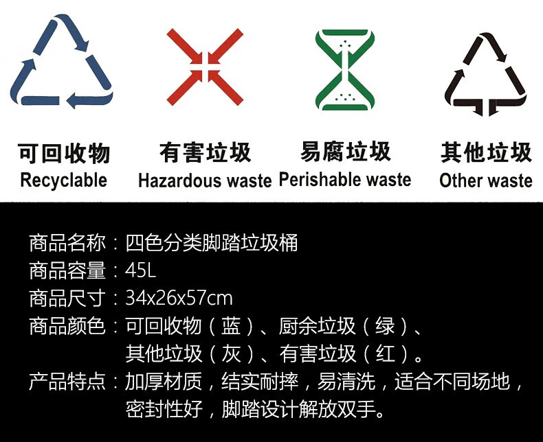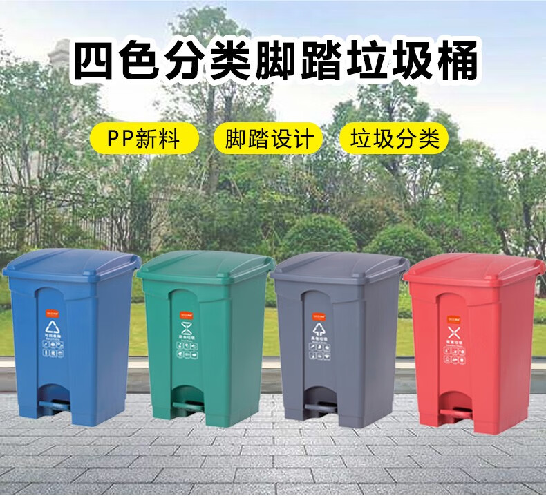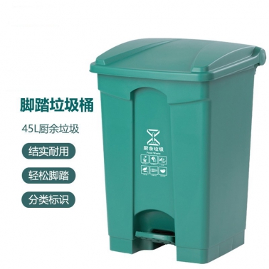 厨余垃圾分类脚踏垃圾桶 45L 绿色 1个