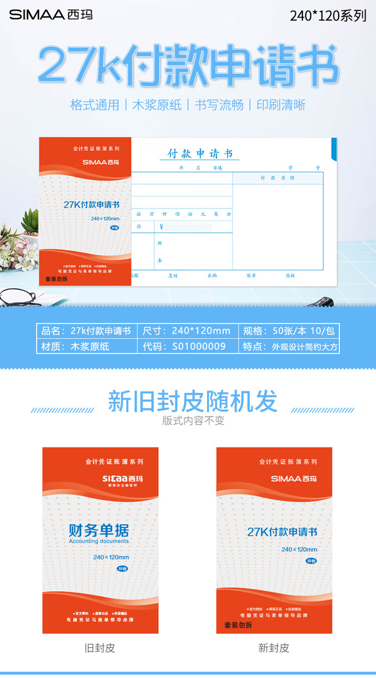 西玛付款申请书 240*120mm 50页/本 10本/包