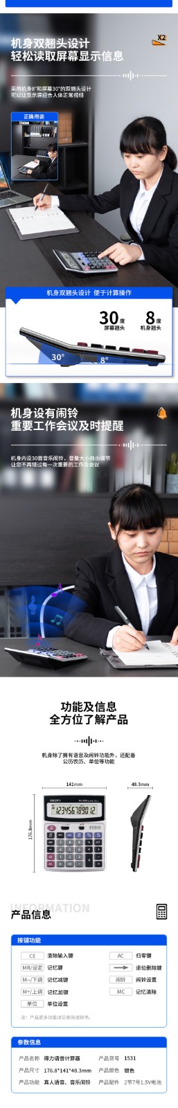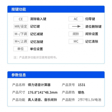 得力1531语音计算器 12位