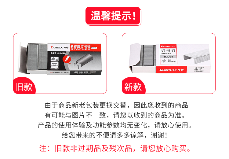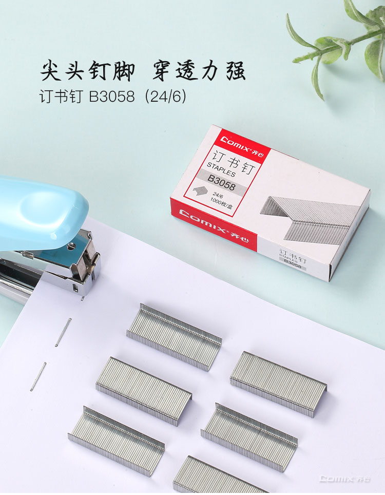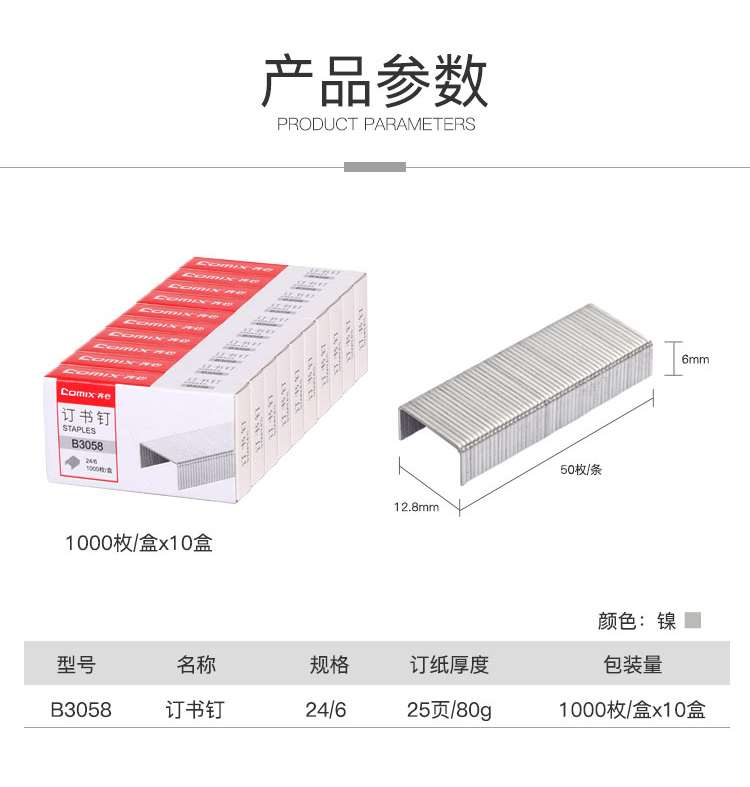 齐心B3058订书钉 12# 1000枚/盒 单位:盒