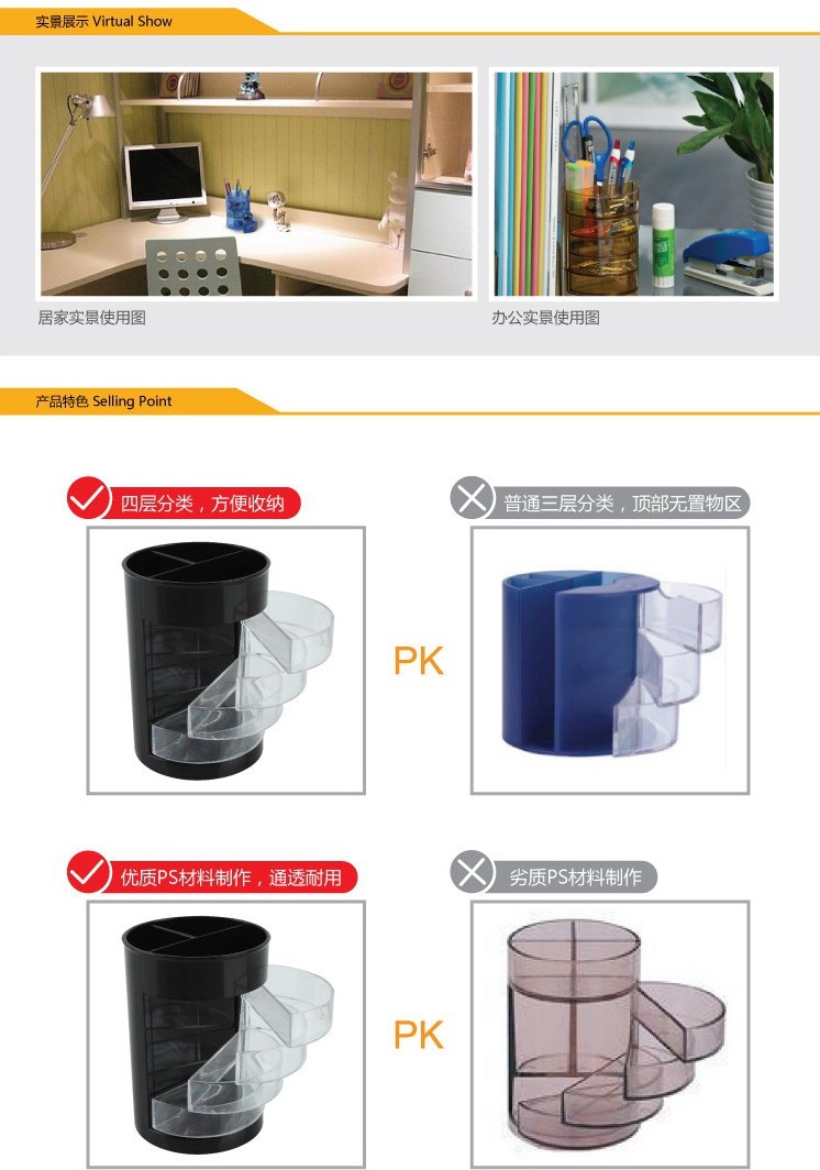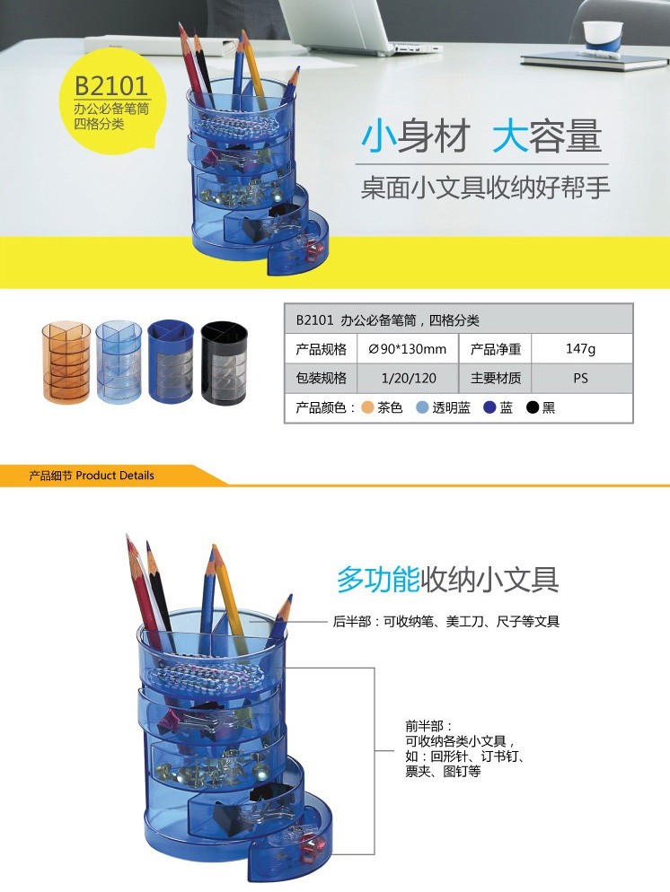 齐心B2101塑料多功能笔筒 颜色随机 单个装