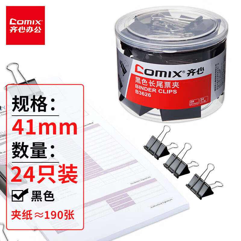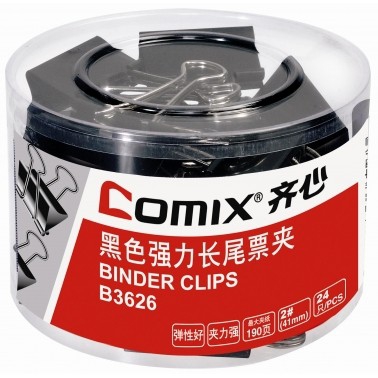 齐心B3626长尾夹 2#41mm 黑色 24只/筒