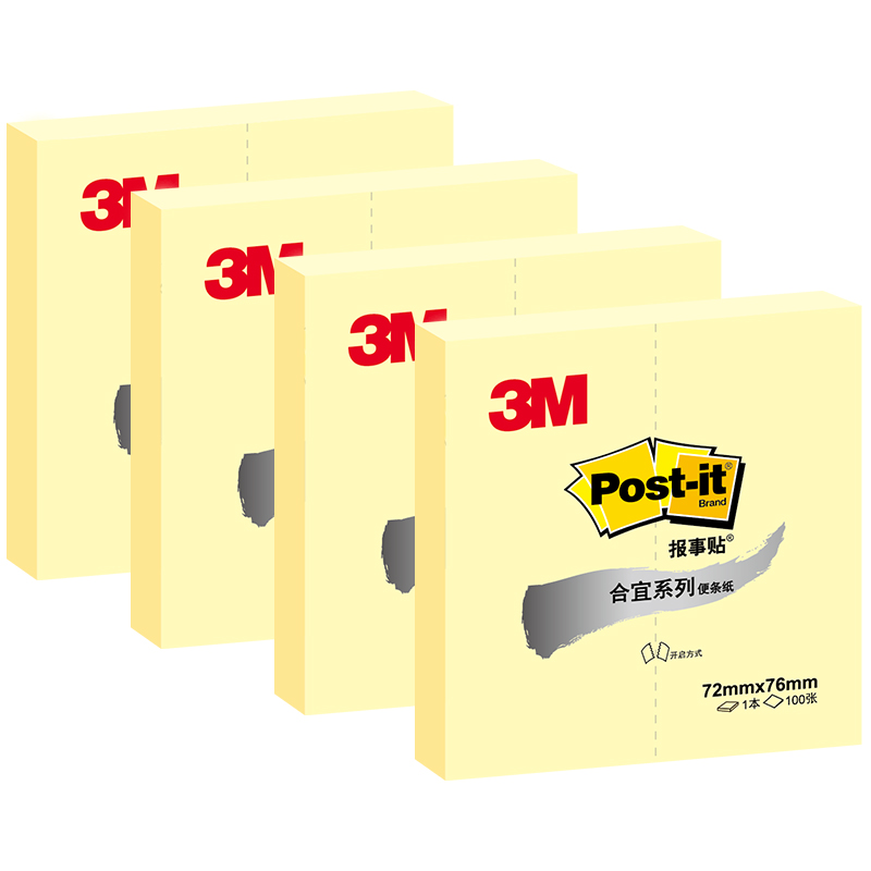3M便利贴报事贴 654B 黄色 单本装