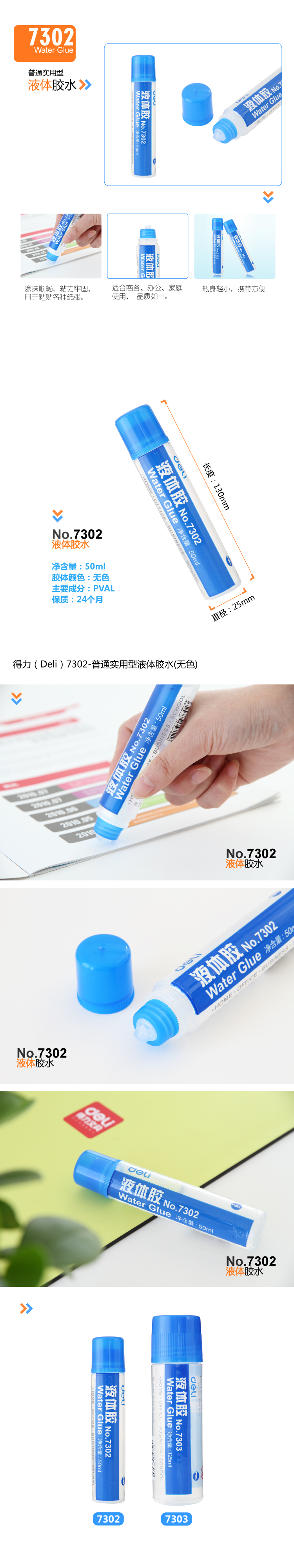 得力7302液体胶水 50ml/瓶 单瓶装