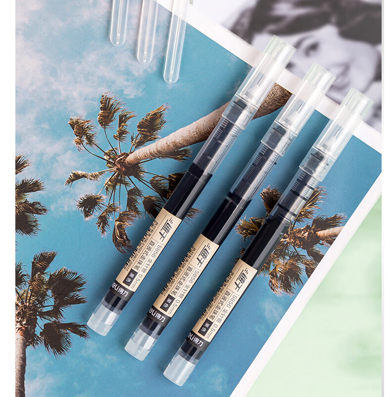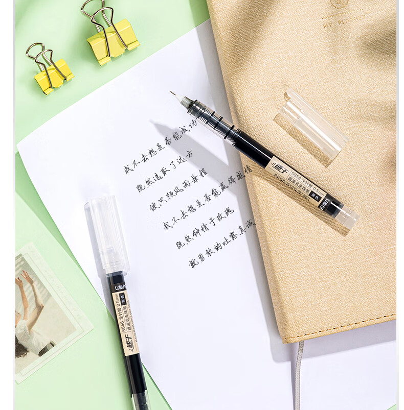 得力S856直液式走珠笔 拔盖式全针管 0.5mm 黑色 1...