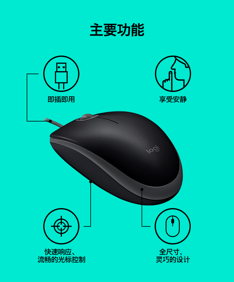 罗技有线鼠标M110 黑色(单位:个)