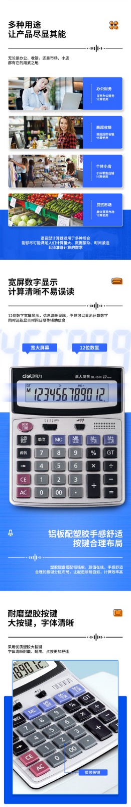 得力1531语音计算器 12位