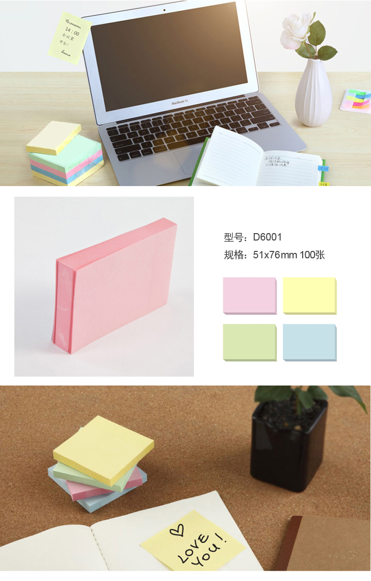 齐心D6001办公系列便利贴 颜色随机 100张/本 单本装